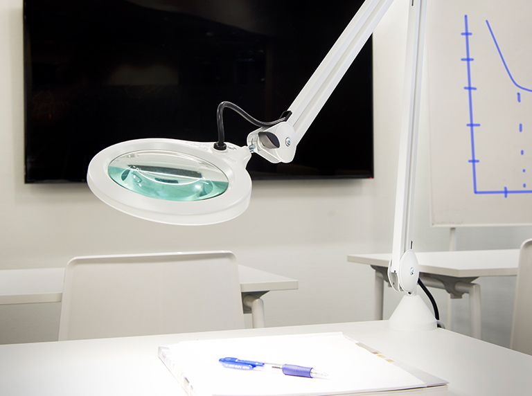 Högpresterande glaslins för maximal skärpa, precision och komfort. Högkvalitativ självbalanserande, flexibel arm med kantklämma eller viktad bas.