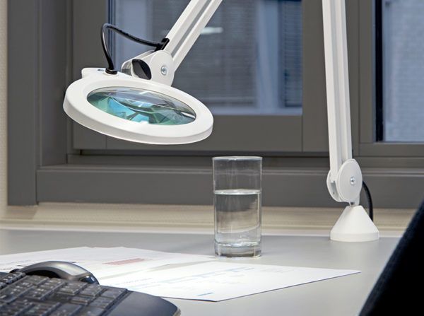 med en helmetallkonstruktion, lysdioder (LED) och en flexibel fjäderbalanserad arm. Det är väl lämpat för professionella industriella tillämpningar med behov av exakt förstoring.