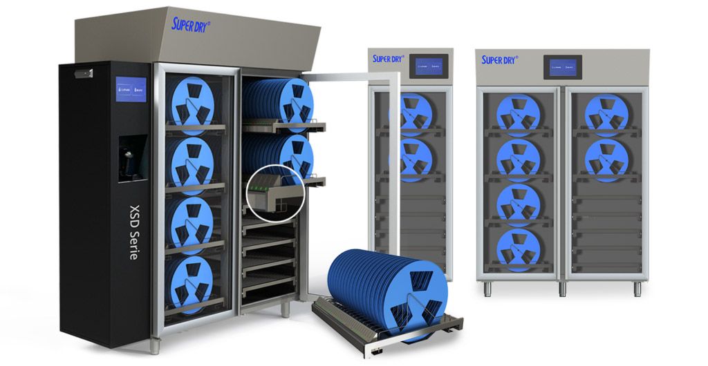 Super Dry® torkskåp är helautomatiska och allt som behövs för installation är ett jordat eluttag. Torkmediet behåller sina egenskaper i mer än 10 år vid normal användning och samtliga modeller är givetvis ESD-säkra. En mängd tillbehör och extrautrustning som till exempel extra hyllplan, ljus/ljud-alarm vid förhöjd luftfuktighetsnivå, värmare och hållare för komponentrullar eller feeders finns tillgängliga.
